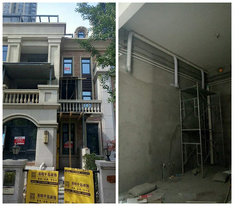 ①【君河灣別墅】中央空調已完工,新風系統(tǒng)和水電改造交叉施工中