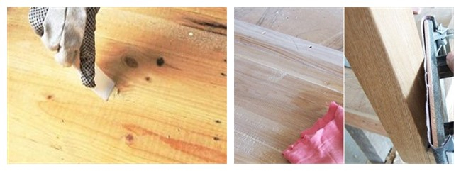 ● 視木紋深淺而定,膩子以刮得薄為好,刮膩子時應用力刮入木縫內,膩子干燥后用砂紙打磨徹底;