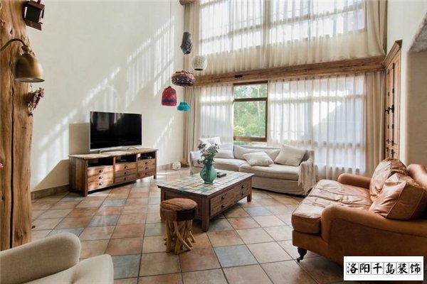 客廳的復古一半源于硬裝,一半源于軟裝。