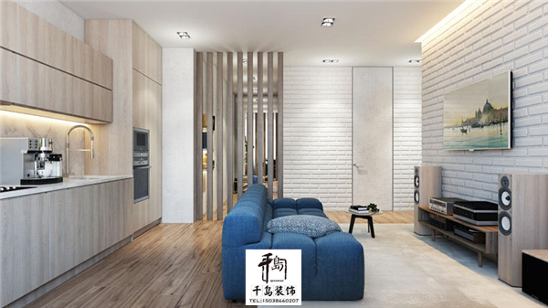 一個暖木色的家中來點藍色的顏色,從廚房到餐廳再到客廳,要不是合理的搭配就會讓整個空間都顯的那么的擁擠,要不是顏色的合理搭配,視覺上能夠那么的協調嗎。
