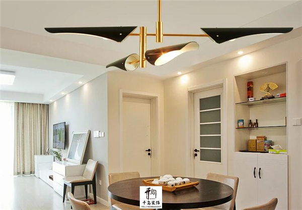 北歐風格的基調需以淺白色為主,因此要大量搭配一些如金屬、玻璃以及顏色鮮明的家飾。比如金屬的吊燈。