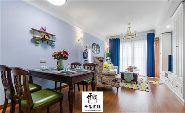 不拘小節的年輕人總愛裝飾自己的家,木質的家具,深藍色的紗窗,淡藍色的背景墻,綠色的椅子,自然色的亮麗都是成功的搭配。