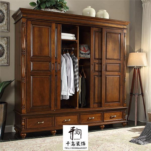 臥室中總是要有一個大衣柜裝滿我們心愛的衣服,美式的家具都是以實木為主,衣柜更不例外,富貴沉穩的色彩讓房間充滿復古懷舊的味道,而衣柜的存在,是為了解決家居收納問題的,所以它的容量也是非常重要的,里面設計非常合理的空間,可以裝下大量的衣物,復古的外形加上現代的設計,讓它集美麗與實用于一身。