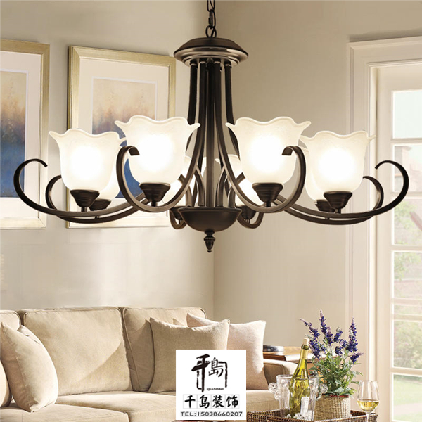 燈飾是家居生活中重要的裝飾,在現代的裝修中,燈具已經不僅限于照明了,它更是一個非常重要的飾品,在帶給我們光明的同時也是調節氛圍的重要的東西,美式風格的吊燈都是以鐵藝為主的居多,復古優雅的鐵藝花紋搭配花朵般的燈罩,帶給你雅致、自然、文藝的感受。