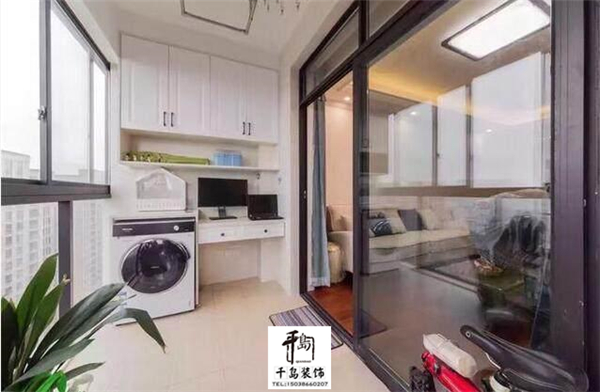 2、陽臺放洗衣機,是不是沒有想到還有這種操作?,F在戶型都很小,衛生間都放不下洗衣機。那么在陽臺上放洗衣機就成了一個不錯的選擇,而且洗衣機上面也可以打柜子,也不用擔心浪費了空間。