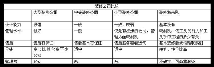 直接找中高檔豪華裝修公司或設計工作室:他們一般為保證新房裝修設計的高品位、服務的高質量,以及為其品牌的長遠利益著想,很多不在家居建材市場設立設計部(店面),裝飾裝修總費用一般會極高。