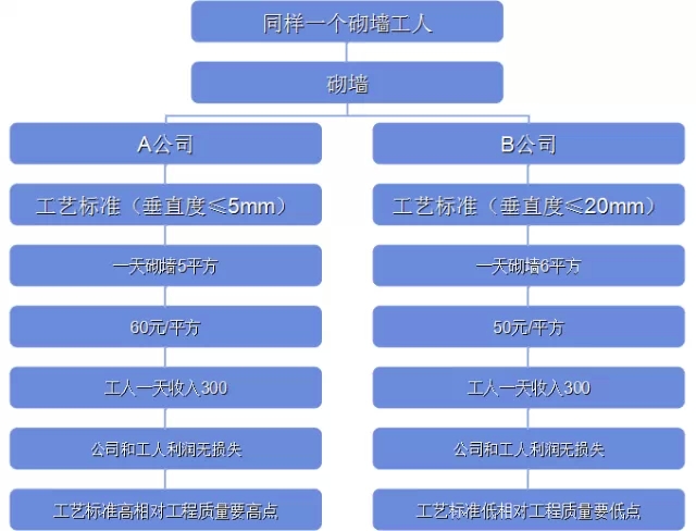 同樣一個砌墻工人,在兩家洛陽裝修公司做事,只要公司要求的工藝標準不一樣,做出來的工程質量就會不一樣,但對于工人一天收入和公司利潤是沒有影響的,主要受傷害的是業(yè)主房子的工程質量!所以在此,小編提醒大家,注重裝飾公司,好現場考察施工工地!