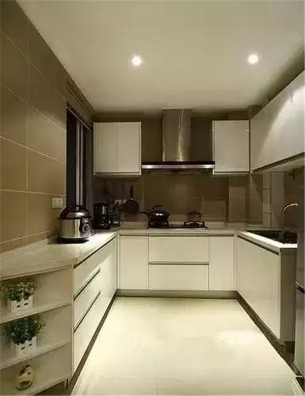 好吊全頂,以便于擦洗。通常用PVC、鋁塑扣板吊頂。注意應選用抗老化的材料,因為廚房整天煙熏火燎的,裝修材料老化的快。