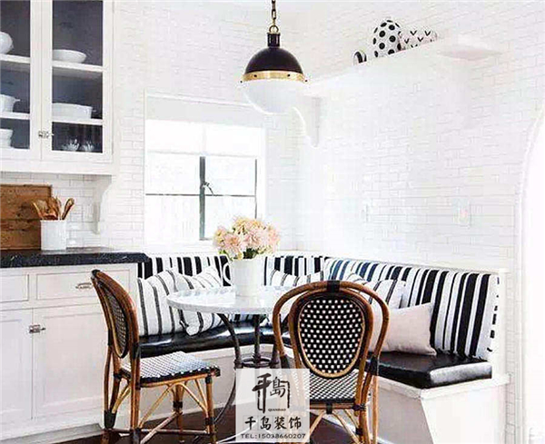 卡座主要有L型、U型、一字型等幾種形式,要根據廚房或者餐廳剩余空間來合理規劃,不能一味追求好看。